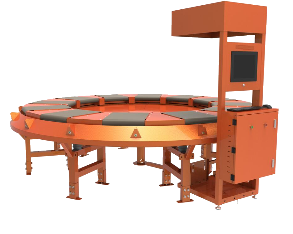 圆盘分拣机大量应用于快递、电商等应用场景。用于快递小件包裹的称重扫码,集自动扫码、自动拍照、自动称重和自动计件功能于一体,通过软件将采集到的条码与重量数据融合后,自动录入电商、快递、物流管理系统。并通过系统通讯按照分拣规则对包裹、货品进行多格口分类分拣。该圆盘分拣机支持12个分拣格口,按照2个上包标准工位,分拣效率可以到达4000件/小时。